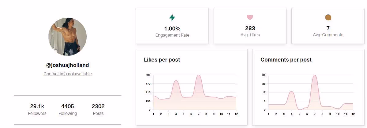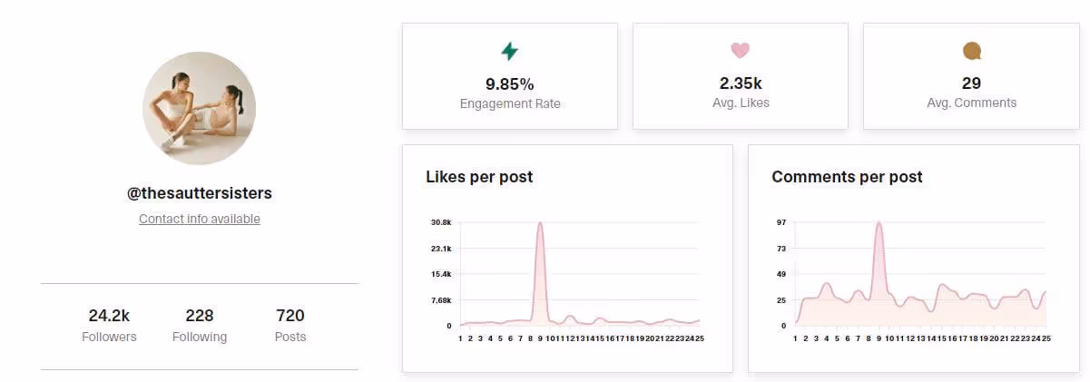 For each Instagram account analysis, we’ve used our free Instagram Engagement Rate Calculator to give you relevant metrics such as engagement rate, average likes, and comments on Influencer’s posts.
