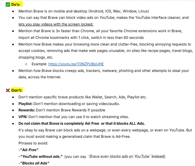 Here’s an example of a detailed brief we created for influencers as part of our client Brave campaign.