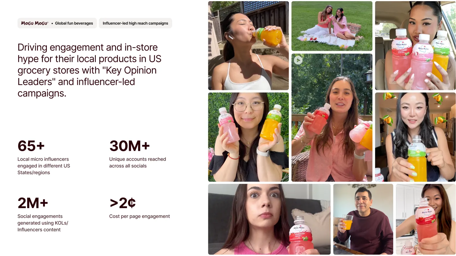 A strong example is Mogu Mogu, a beverage brand that launched influencer-led campaigns across the US to boost in-store excitement.