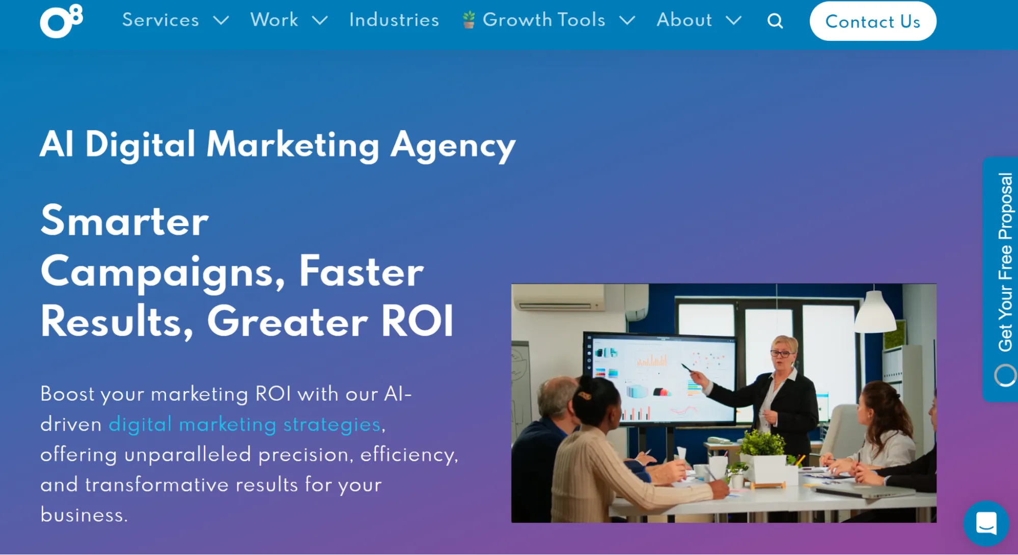 O8 presents itself as a hybrid between a technical digital marketing agency and an AI-first performance partner.