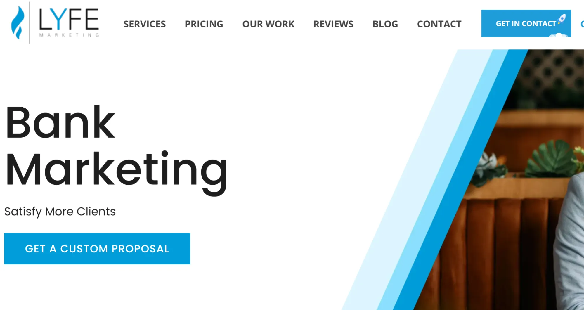 3. LYFE Marketing: LYFE Marketing helps financial institutions strengthen their digital presence through social media, PPC, email campaigns, and short-form video. They are effective at building cost-efficient lead pipelines, even with modest budgets.