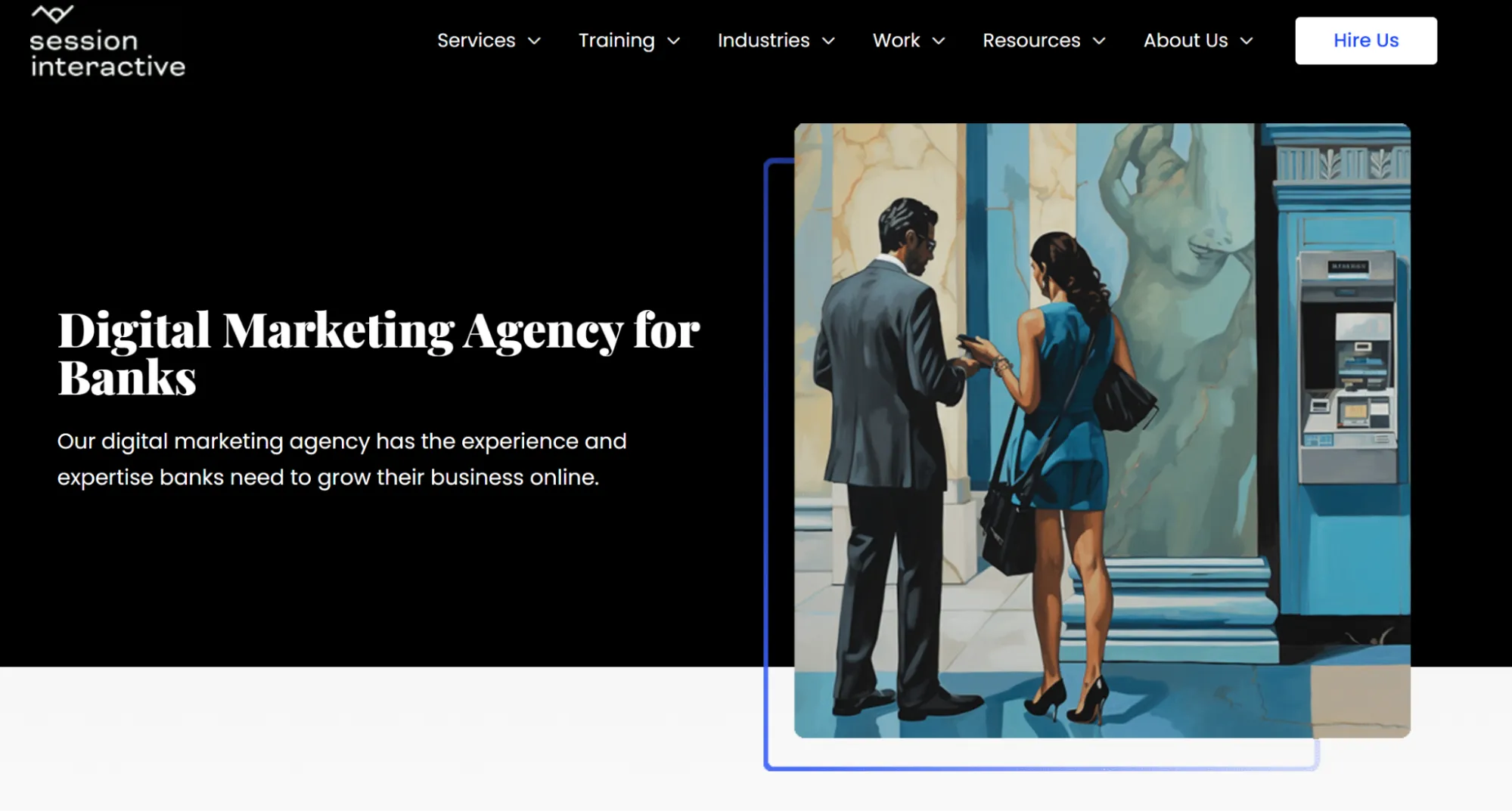 5. Session Interactive: Session Interactive is a data-driven digital partner for banks and credit unions. With expertise in SEO, PPC, CRO, and content marketing, they focus on consistent lead generation, measurable results, and compliance-friendly execution.