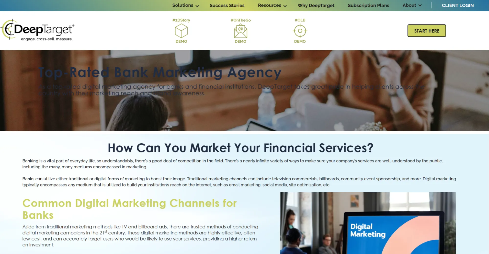 Their method builds discoverability for financial institutions by aligning content, paid media, and retargeting strategies with well-defined buyer personas.