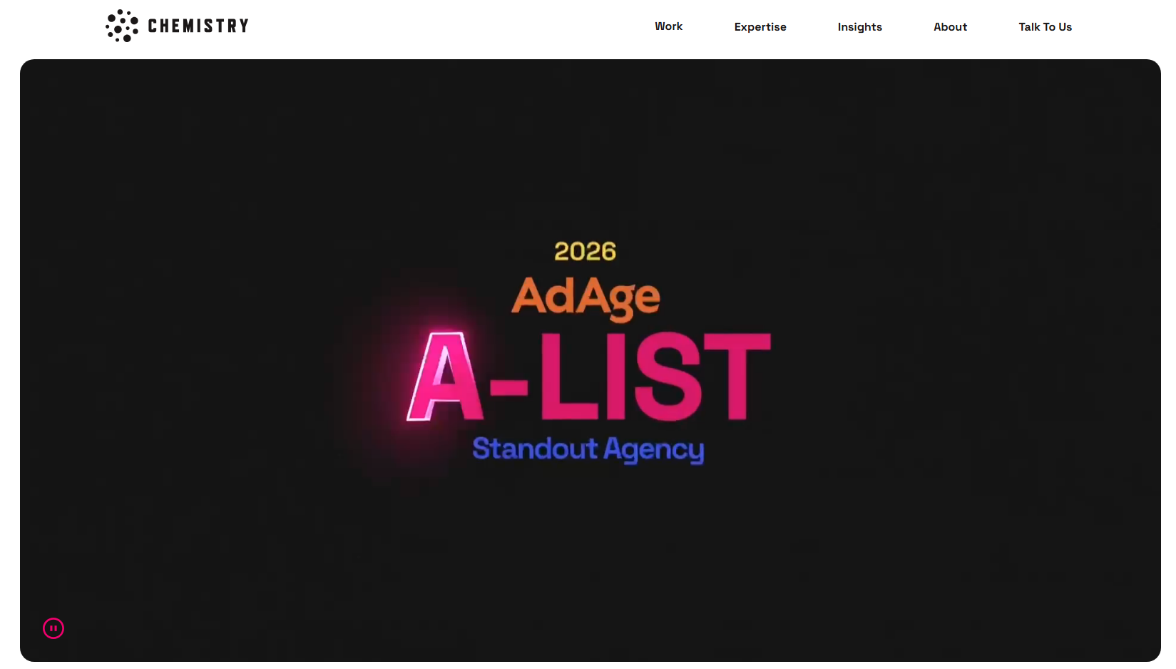 Chemistry pairs strategy and analytics with creative that actually takes swings; the client list alone tells you that (Netflix, Five Guys, Domino’s, Atlanta United, Children’s Healthcare of Atlanta). They’re dual-office with Pittsburgh, but the Atlanta team is the center of gravity. What separates them is how deeply marketing measurement strategy is embedded into creative development rather than treated as post-campaign reporting.