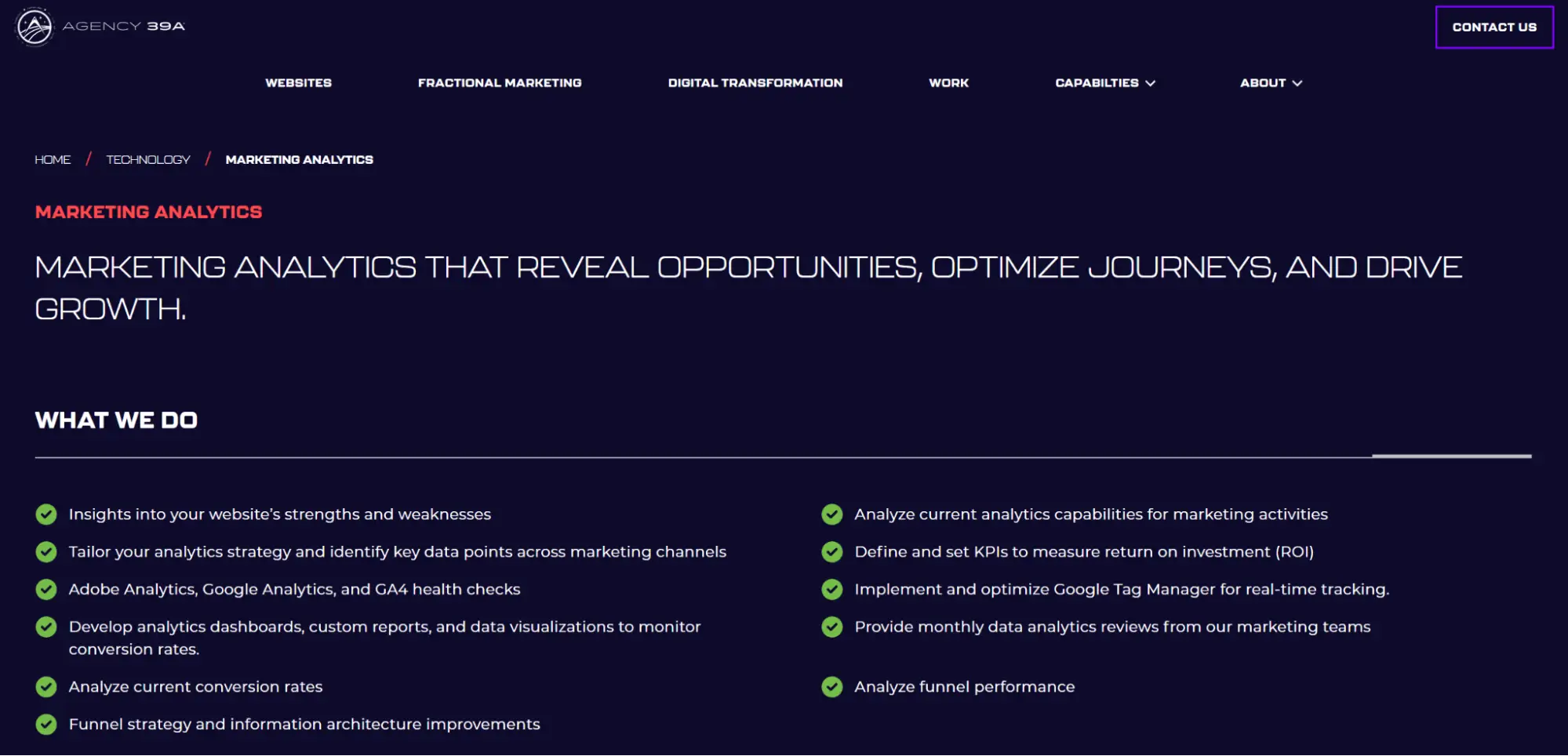 Reason to work with Agency 39A: You gain a partner who specializes in marketing analytics that can deliver funnel-wide impact.