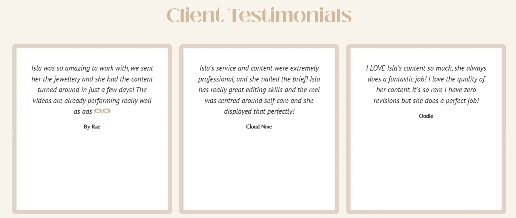 That’s why any established UGC creator needs a UGC portfolio. And if you’re a brand, you should consistently insist on reviewing the portfolio of anyone you’re considering working with.