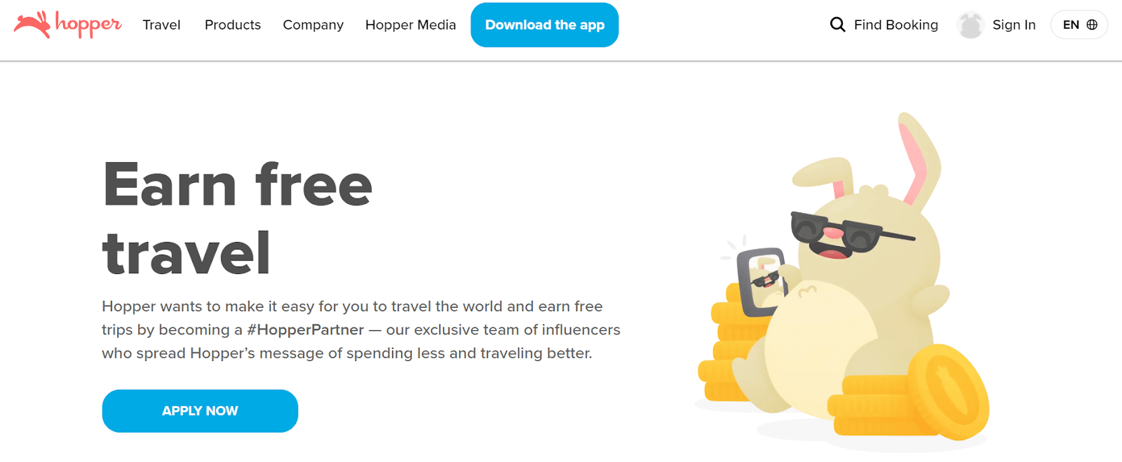 Below is an example of an affiliate referral program for influencers offered by Hopper, one of our clients.